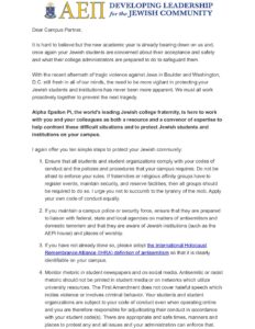 - ALPHA EPSILON PI ISSUES SAFETY WARNING TO STUDENTS